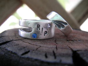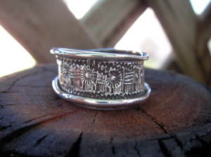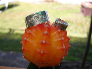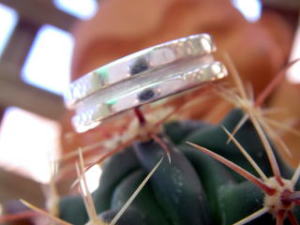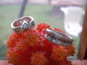 | -Mさんのコメント- どーもありがとうございました。 とってもステキな指輪が出来ました!!シルバーアクセは初めてでとってもいっぱい 工程があるんですね。びっくりしました。とにかくありがとうございました。 うちの彼に気に入ってもらえると思います。 Mさんは個性的な作品を大胆に作っていかれました。 彼も気にいってくれたとの事ほんとに良かったですね! |