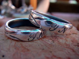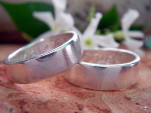 | ーYさんのコメントー はじめはどうなるかと思いましたが すっごーく上手に出来ました♪ 色々話も聞いてもらって楽しかったです。 彼とおそろいのリングを作ったYさん。 文字を中に刻んで外側はシンプルに仕上げました。 純粋な気持ちが内に込められているようで大切な宝物 といったイメージがぴったりのリングでした。 |