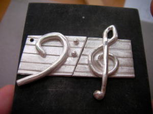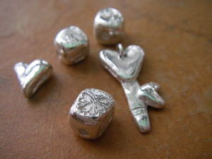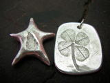| -Nさんのコメント- Silver Clay お初!! すっごく楽しかったです。 よくばって3つも作っちゃいました!! Takakoさん、手取り足取りおしえてくださり どうも有難うございました! また作りに来ま〜す。Nさんの作品はかわいい人型の イニシャルトップで個性的な仕上がりです。 |