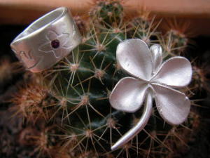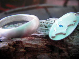 | -Aちゃんのコメント- 初めてシルバーアクセ作りに挑戦しました。 でもぶきっちょなあたしは失敗ばかりでした。 途中で指輪はが4つに割れてしまってもう あきらめようかと思ったけど たかこサンが直してくれてなんとか完成しました。 これは友達へのプレゼントです。 完璧とはいえないけど気に入ってもらえるとうれしいです |