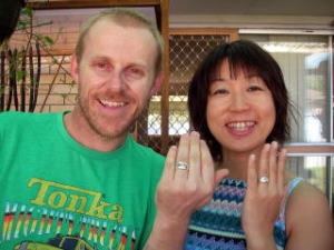 | ウエディングリングをカップルで作りに こられました。 4月に挙式だそうです。しかもバイロンベイで 挙げられるんですって。 きっとステキでしょうね。 そしてご自分達で作られたリングを 誓いの際に着けられるなんてとても深いです。 そんなステキな思いのリング作りに たち合わせていただけて嬉しく思います。 Mihoさん、ウエディングのお写真楽しみにしていますね! |