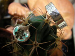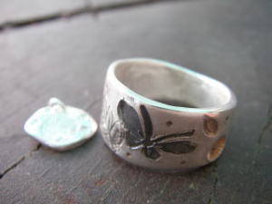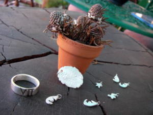 | Kさんは注射器に入ったシルバークレイでリングを 作って行かれました。 とっても涼しげで素敵に仕上がっていますね。 |