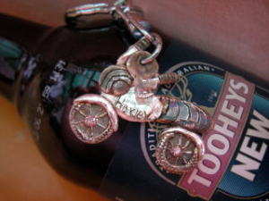 | 今回2回目の参加のMさんはお父さんへの 誕生日プレゼントにお父さんの好きな ハーレーのキーホルダーを作りました。 今回はわざと光沢のない感じに仕上げ、 とっても味のある作品になりましたね。 |