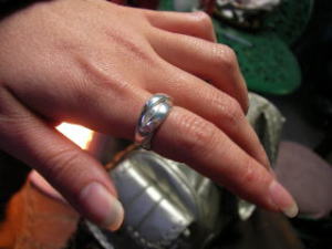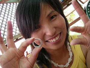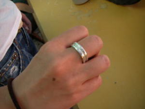 | -Mさんのコメント− シルバー作りは初めてだったのでいいのが 出来るか心配だったんですが思ったより いいものが出来て本当に良かったです。 私のオーストラリアの思い出の1つになりました。 まだ5ヶ月くらいオーストラリアにいるのでその間、 大切にこの指輪を使いますね。 今度は更に難しいものに挑戦したい!! |