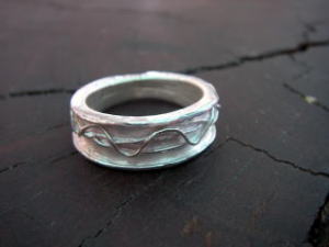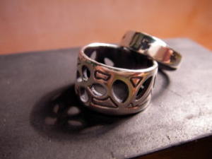 | Sちゃんの次の作品です。またまた素敵なデザインでかっこいい リングが完成しましたね。カットしたデザインがいいですね。 |