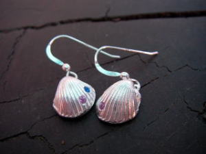 | ーKさんからのコメントー 初めての手作りに挑み手が上手く動かなく 戸惑いながらの試みでしたが出来上がり 気に入りました。 楽しい時ありがとう! KさんとYさんは貝殻のデザインに合成石を ちりばめてこの街にぴったりなピアスをつくられました。 |