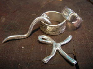 | -Sさんからのコメント- 初めてシルバーを作りました。とても楽しかったです。やみつきになりそうです。またいろんな物を作りたいと思っています。 -Hさんからのコメント- 突然来ることを決めたのでデザインも考えずに もたもたしてしまったけど、 出来上がった作品を見てとても満足。 また機会があったら別のものを作ってみたいです。 ありがとうございました。 |