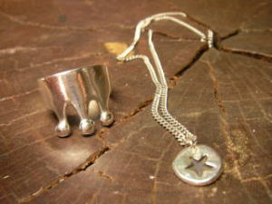 | ーKさんのコメントー 旅の思い出にと思ってシルバーアクセサリー作りを 教えて頂きました。ずっと欲しかったピンキーリングと ペンダントチャーム、すっっっっっごく気にいる作品が出来ました。この子たち大切にします。 Kさんはご自分のイニシャルをモチーフに ステキな作品を作られました。 手作りでしか出来ない作品ですよね。 |