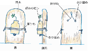 3.革ひもとビン、裏の針金を止めるために合計5か所ネジを使い留めていけば完成です。